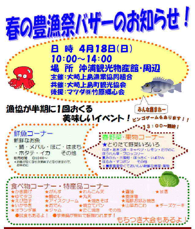 大崎上島漁業協同組合から、春の豊漁祭バザーのご案内