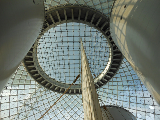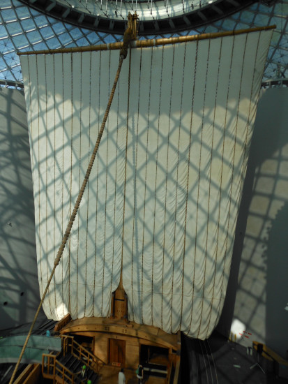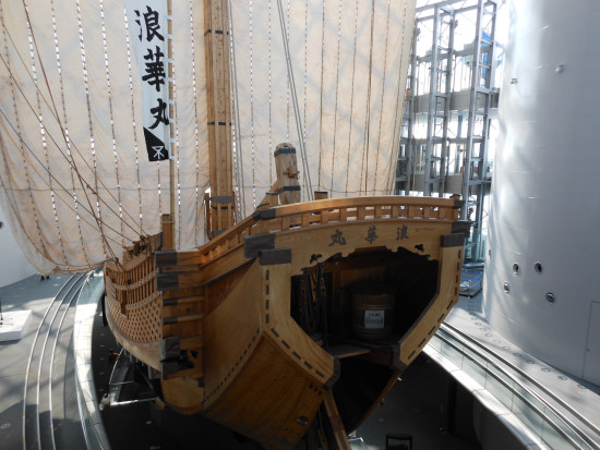 実物の浪華丸を見ると、船の大きさにくらべその不釣合いな巨大な帆を見ると、航海は大変だっただろうと連想できる。