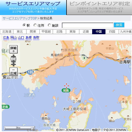昨年の夏に、携帯電話の電波の受信状態がすごく良かったので、調べると、生野島は、WiMAXのサービス環境にあります。