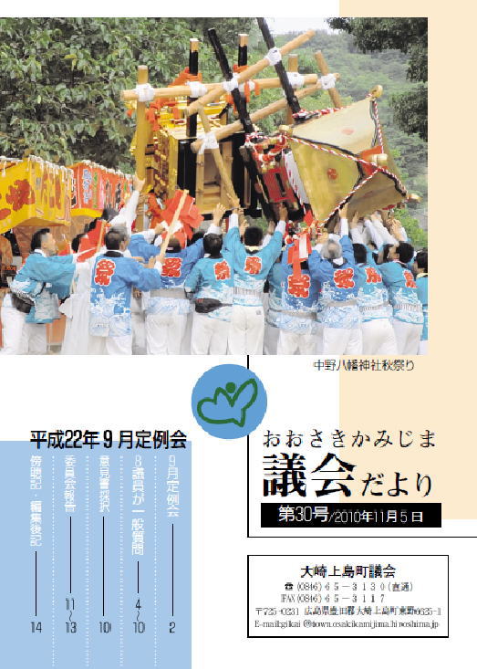平成22年9月に行われた議会の内容を載せた「議会だより第30号」が、資料としてあがっています。