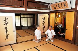 【写真説明】豊町大長地区に残る新谷邸。下鍛冶さん(右)は竜馬が宿泊した可能性があるとみる