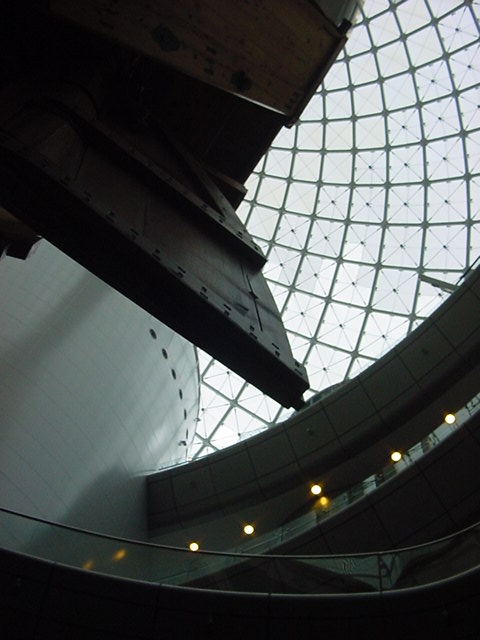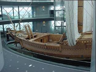 浪華丸は、全長30メートルもありますから、海上クレーンでつり上げて、このドームの中に固定させました。
